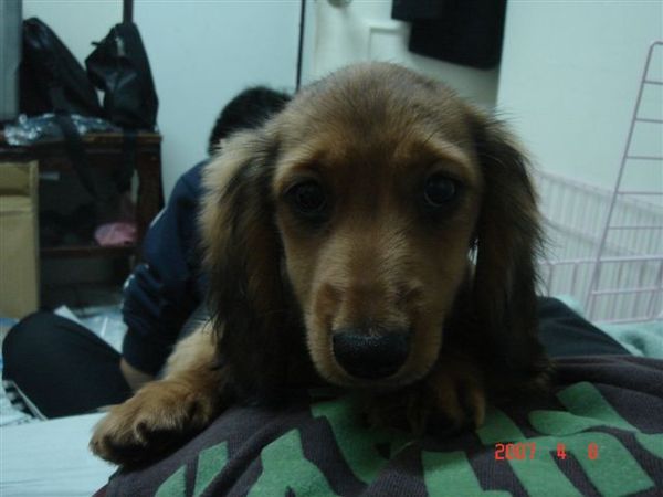 2007.4.8.當他滿三個月這天,我們帶他回家...用了飼主給我們的籠子裝好,回到家的第一張照片