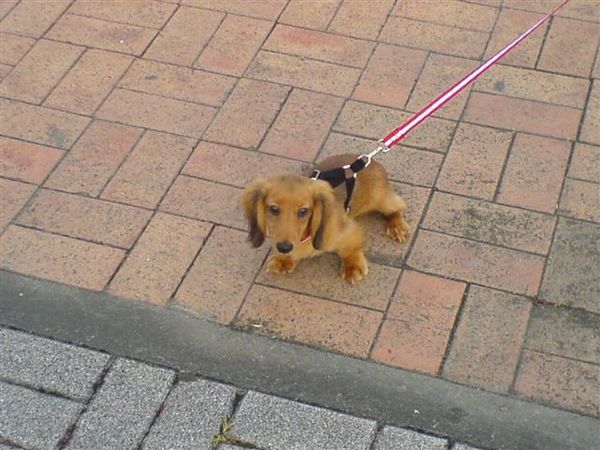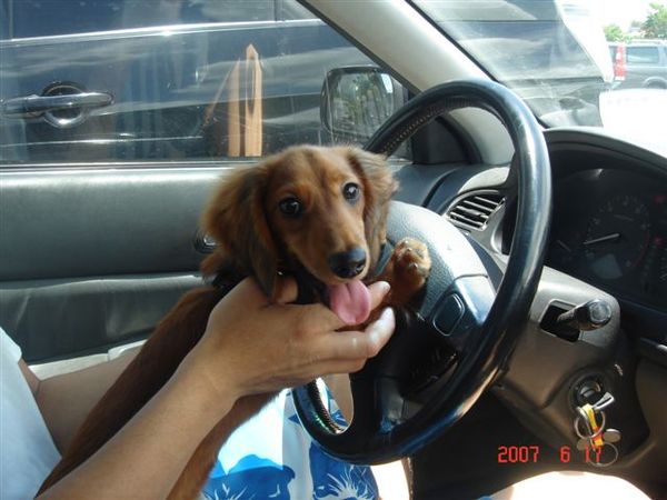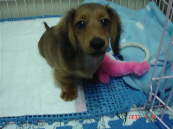 紅帶黑的毛色(Shade Red),略帶八字眉的無辜的雙眼..不是當初只是說先去看看就好嗎?