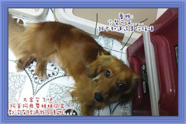 雖然剛帶回來的時候....畢魯有點不適應...總是會去偷咬Denny...爭寵..把我們要摸Denny的手頂開...