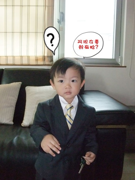 啥?沒照片阿~~~那來張佑佑試西裝的試裝照好囉!!