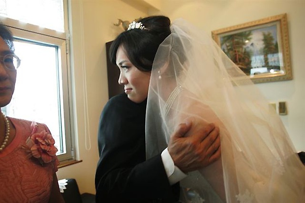 還沒蓋頭紗~老爸一說話~我的淚就流下來了~