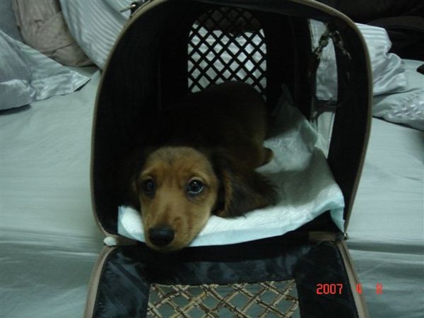看他剛開始怯生生的樣子...在袋子裡無聲的默默留眼淚(還是鼻水??)